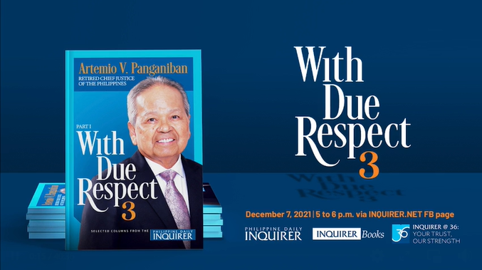 I may have spoken too soon. Had I paused and mentally examined the list of former members of the Court, I would have realized that there is quite a number whom age has not bogged down at all, and who, even during their retirement, have continued to be as sharp and as prolific as when they were holding office in the Supreme Court. From among this list, one easily stands out, and it is this one, who today we celebrate not just his 85th birthday, but also the launching of his book, With Due Respect 3, the third compilation of selected articles he wrote for the Philippine Daily Inquirer.