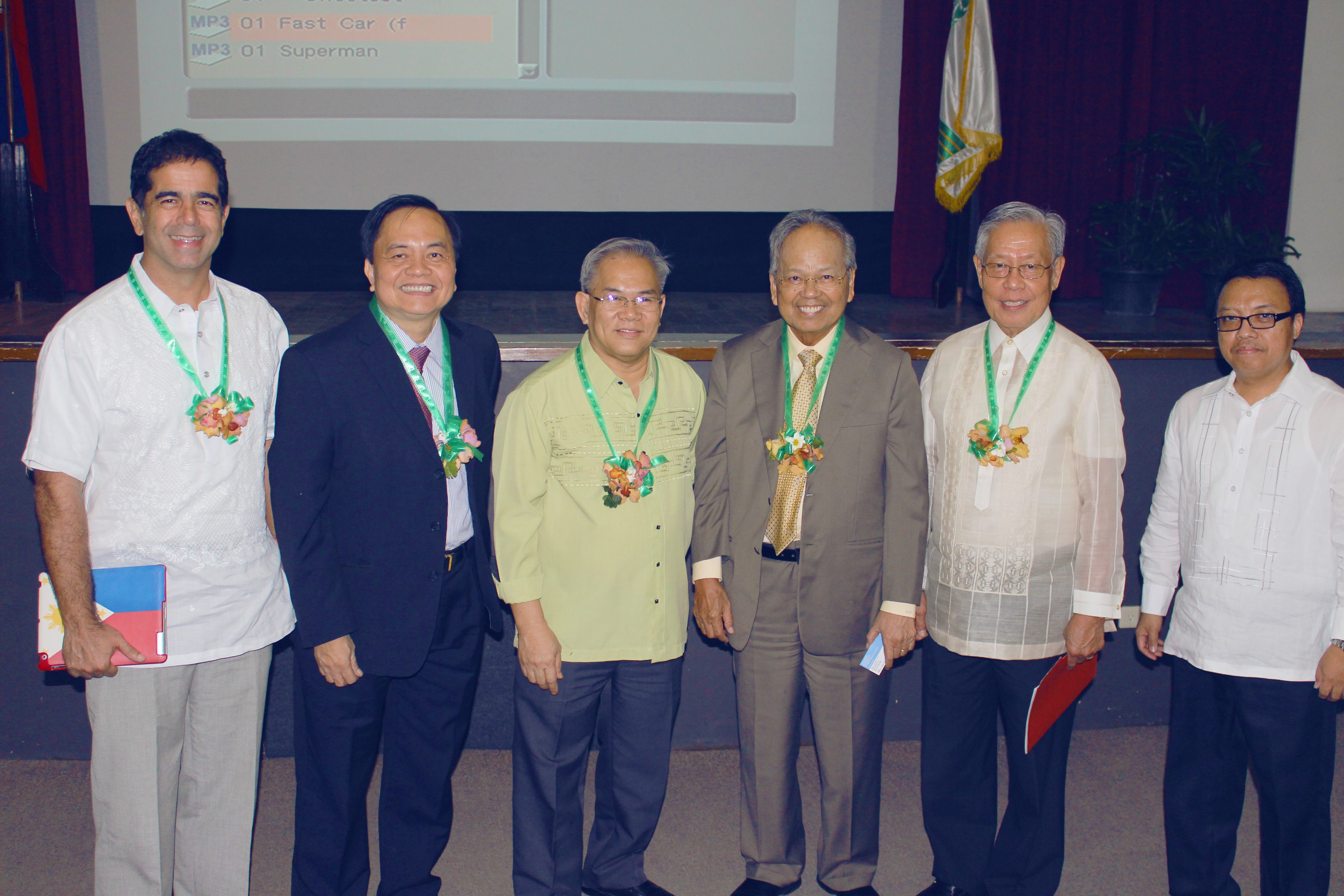 Left to Right: Mr. Gordon Alan Joseph (President, Cebu Business Club), Mr. Anecito Sobrepena (President, Metrobank Foundation), Fr. Dionisio Miranda, SVD (President, University of San Carlos, Cebu), Retired Chief Justice Artemio V. Panganiban (Chairman, FLP), Retired Chief Justice Hilario G. Davide, Jr. (Head, Governance Committee and Trustee, FLP), and Atty. Daryl Bretch M. Largo (Professor, USC and Dean Joan Largo’s husband).