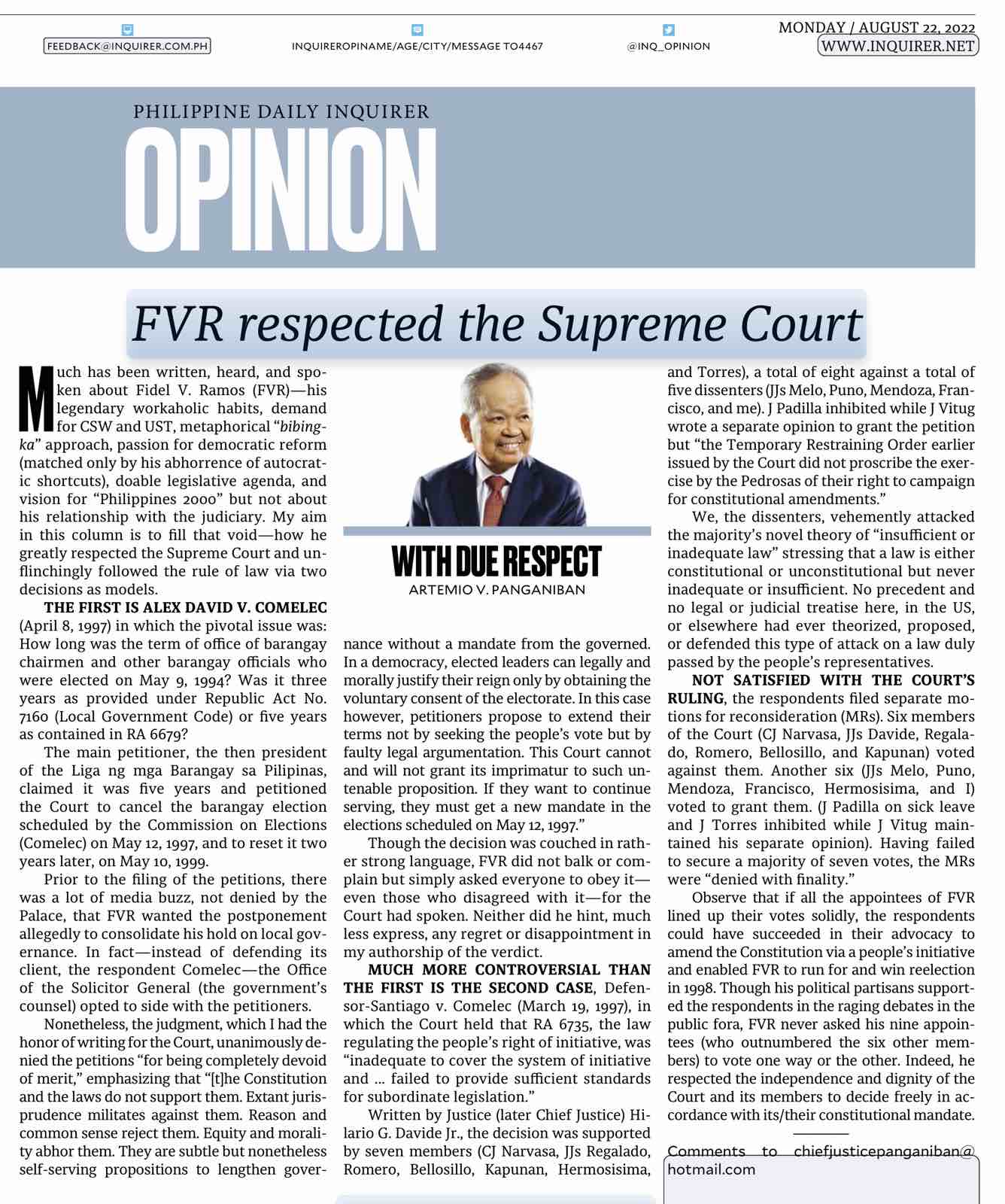 With Due Respect by Chief Justice ARTEMIO V. PANGANIBAN (Ret.)
